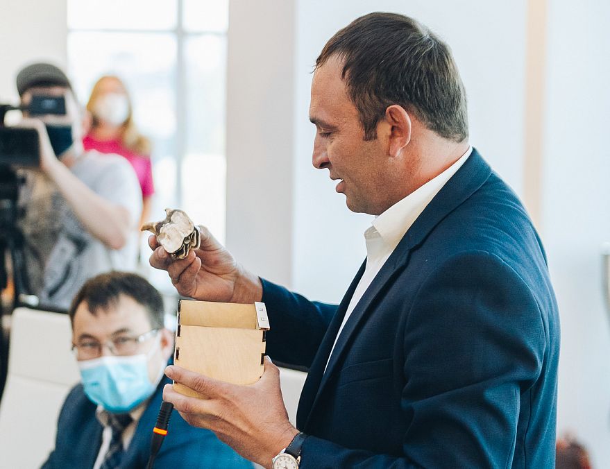 Алексею Цыденову подарили зуб шерстистого носорога. Видео
