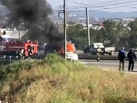 По словам очевидцев, автомобиль воспламенился из-за короткого замыкания