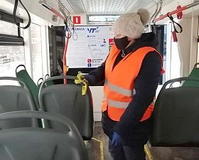Городской электрический транспорт дезинфицируют уже девять месяцев