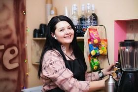 Екатерина Туйманова продаёт свежесваренный кофе и фаст-фуд на вынос
