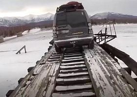 Там набирает популярность ролик с грузовиком, едущим по опасной переправе