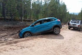 Их автомобиль снесло в песчаную промоину