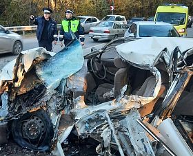 Легковушка вылетела на «встречку» и врезалась в «КамАЗ»