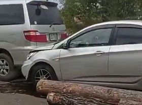 Брёвна, выпавшие из грузовика, врезались в другие машины