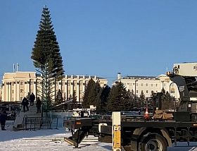 Огромный металлический каркас вовсю украшают соснами