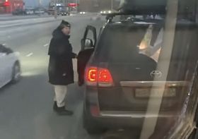 По словам очевидцев, хозяин внедорожника мешал проезду автобуса и пытался устроить драку