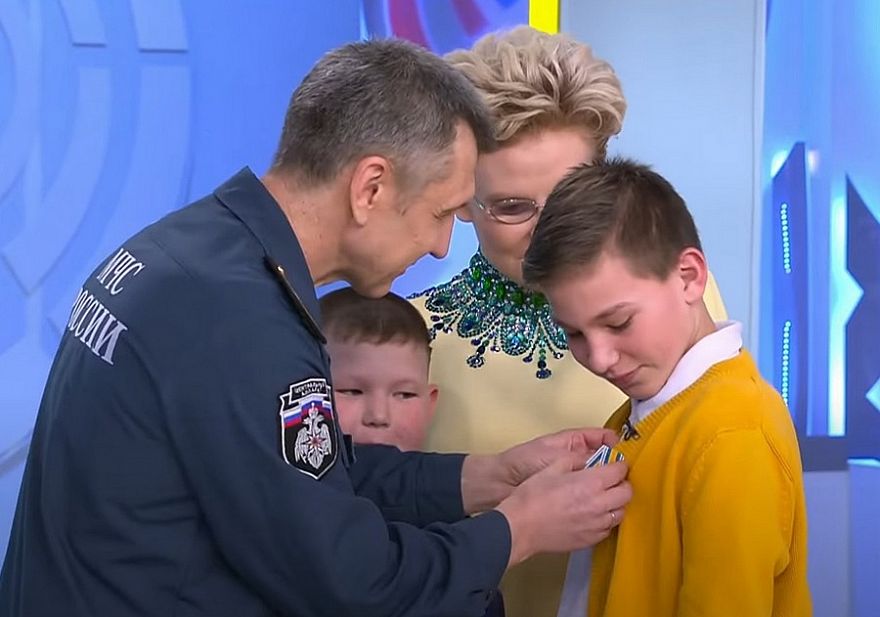 Спасатели вручили ведомственную медаль Никите Лобастову на передаче «Жить здорово!»