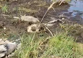 Берег реки, где рыбачат люди, оказался усеян дохлыми псами