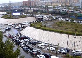 Коммунальщики усиленно откачивают лужи с городских улиц