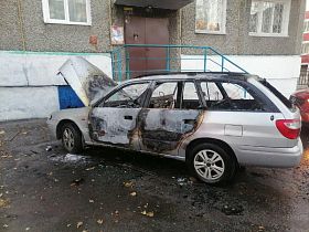 Машину, припаркованную прямо у подъезда, внезапно охватило пламя