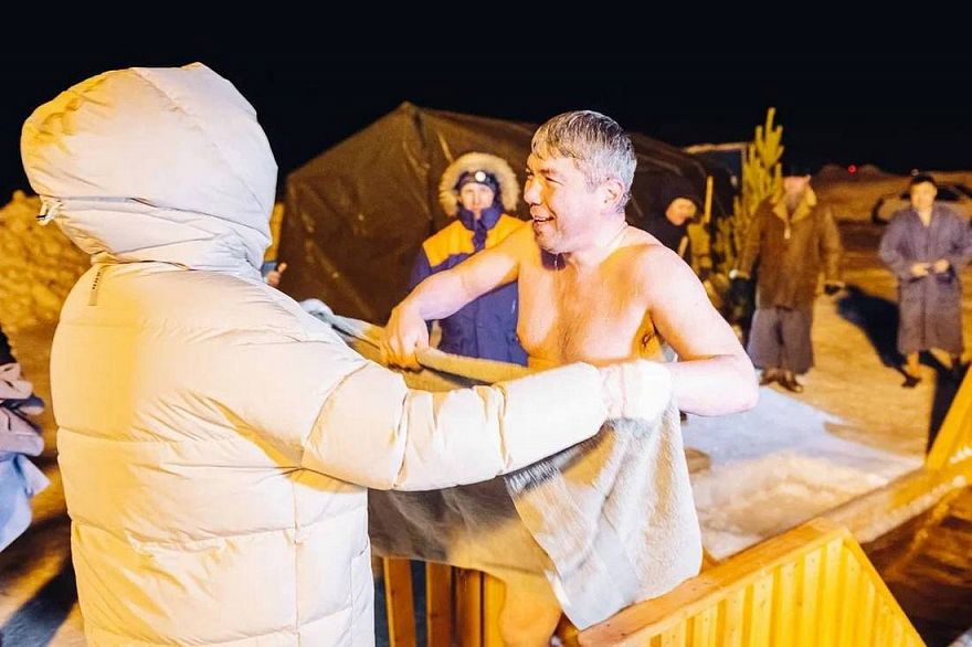Алексей Цыденов искупался в проруби у Посольского монастыря