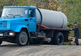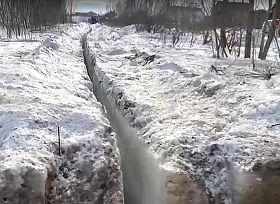 Специалистам пришлось пропиливать в ручье лед, чтобы не допустить выхода воды на проезжую часть