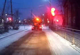 Уборщики очищают от снега тротуары и остановки