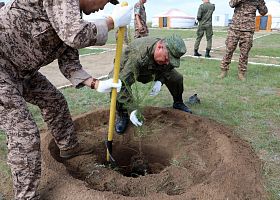 Российские и монгольские военнослужащие высадили деревья на аллее «Дружбы»