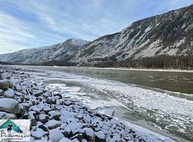 Вода и плывущие льдины приобрели желто-коричневый цвет