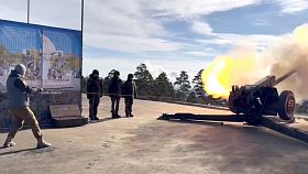 Почетный залп произвел известный в Бурятии общественник Денис Леонов