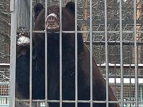 Немного заспанный медведь Малыш выбрался из берлоги на солнышко
