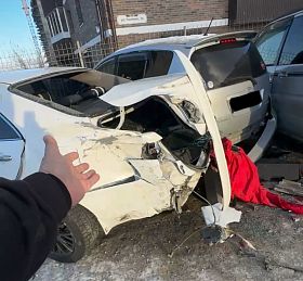 Неизвестный протаранил три стоящих на парковке автомобиля и уехал