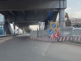 В середине октября откроют правую полосу, но перекроют левую из-за работ под трамвайными путями