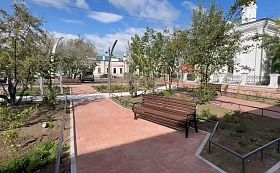 В сквере установили арки с подсветкой и скамейки, а также расширили парковку