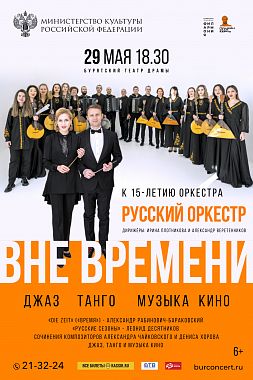 Не секрет, что музыка способна преодолевать пространство и время, создавая связь между прошлым, настоящим и будущим. Это бесконечный диалог между поколениями, в котором ощущается единство традиций и инноваций. Концертная программа к 15-летию оркестра русских народных инструментов «РУССКИЙ ОРКЕСТР» - «Вне времени. Джаз. Танго. Музыка кино» - это уникальный сплав музыкальных жанров, объединенных одной идеей, виртуозным исполнением и оригинальными аранжировками под управлением Ирины Плотниковой и Александра Веретенникова.