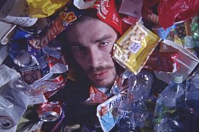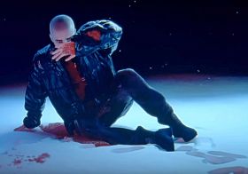 Он исполняет композицию «Детка-Голливуд», лёжа в мусорном баке