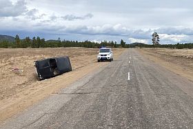 После столкновения легковушка опрокинулась на бок