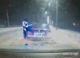 А его нетрезвая пассажирка в это время легла на асфальт у патрульного авто и снимала происходящее на видео